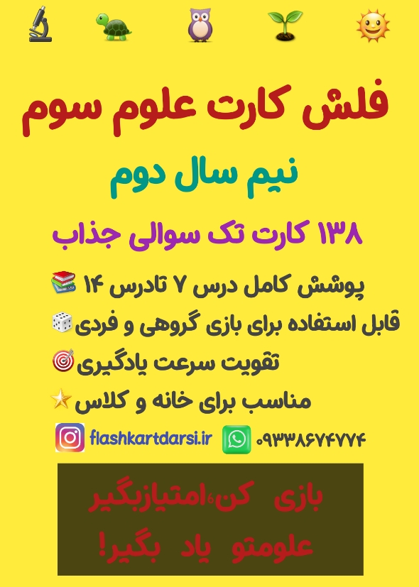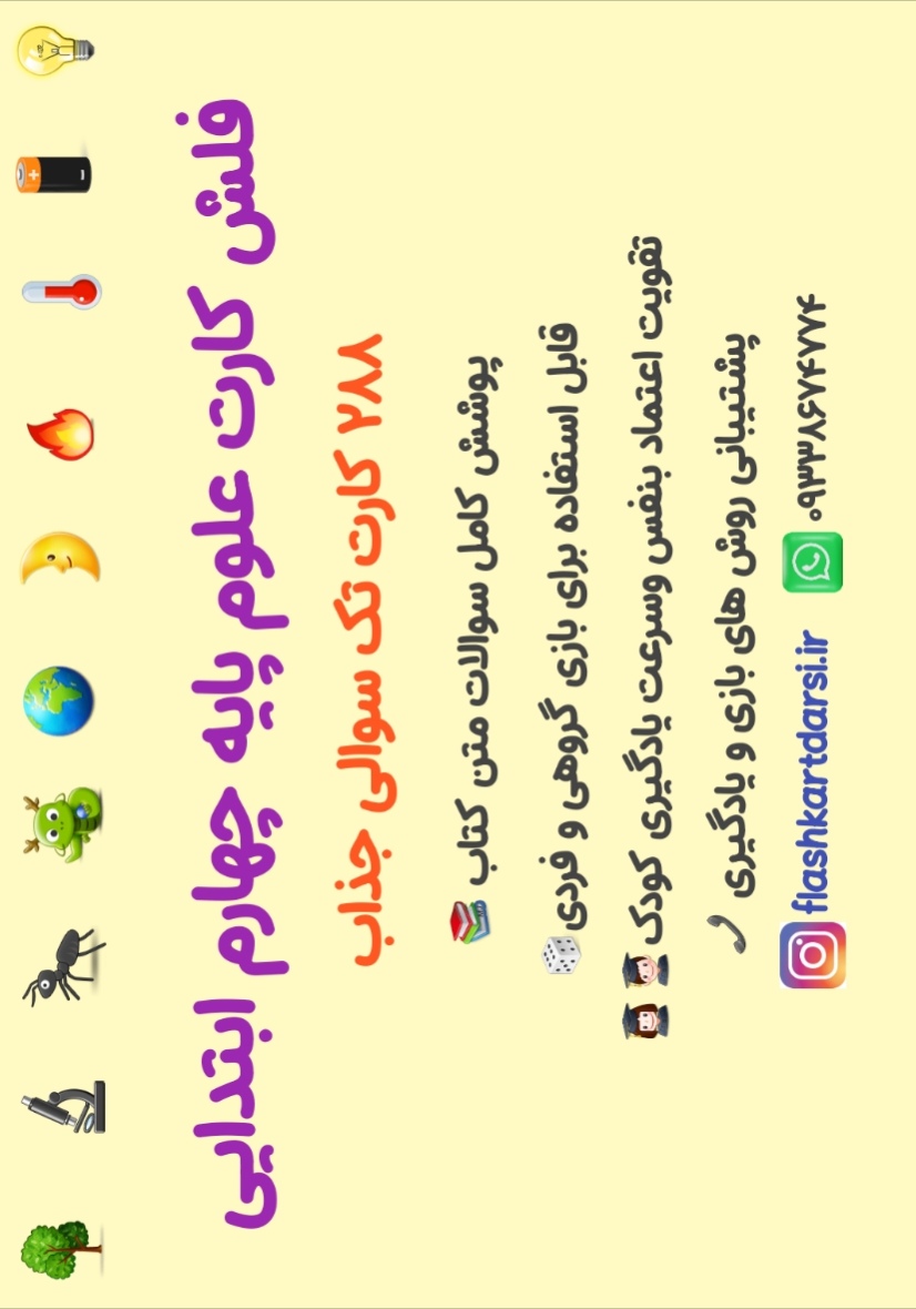 تعداد کارتها: ۲۸۸ کارت (پوشش تمام سوالات کتاب علوم چهارم)