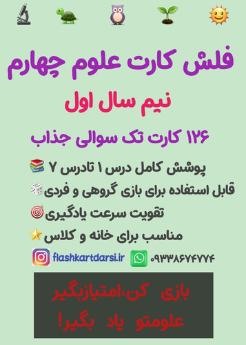 تعداد کارتها: ۲۸۸ کارت (پوشش تمام سوالات کتاب علوم چهارم)